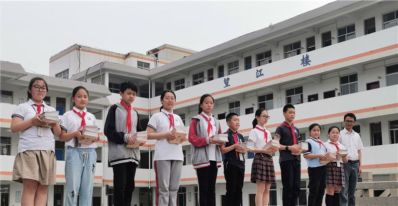 启动仪式中,大队宣传委员矫洁同学向全体同学发出倡议:希望全体学生以主人翁的责任感,积极行动起来,以“红领巾大能量,做好家乡小主人”精神,关注今天的环境,让明天的环境更清新,让明天的港城更美丽。