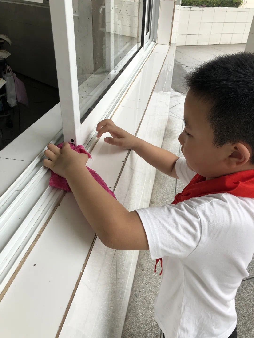 在班主任和配班老师的带领下,各班孩子积极行动,个个元气满满,不怕脏,不怕累,团结协作,扫地、拖地、擦桌子……在老师的指点下,大家掌握了不少劳动技能,全面打扫了教室各个角落的卫生,清除了墙面、窗台的灰尘和污渍。
