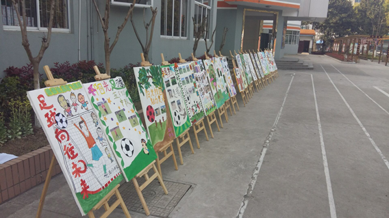 4月1日下午,一块块主题鲜明、内容详实、图文并茂的展板均摆放到位。一张张精心拍摄的照片,一幅幅认真绘制的图画,一条条醒目的标题“我为足球狂”“阳光足球 快乐你我”……吸引了评委老师和前来参观的每一位师生。