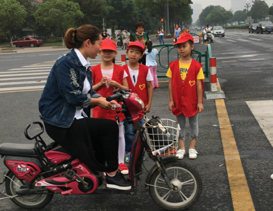 三(5)班的孩子们在老师和家长的带领下,一起来到了大润发红绿灯路口,做起了小小交通指挥员。小伙伴们有的对违停车辆进行劝离,有的热情地跟行人讲解交通知识。他们用自己的实际行动告诉周边的人:文明交通,安全第一。