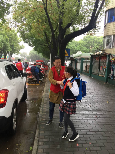 每天早上7点 和下午放学时 , 中兴小学 校门口 就有一群 身穿 志愿者红马甲的家长 ,他们 为孩子们保驾护航。车辆停靠在校门口,他们 使用文明的手势示意车辆 及时开走;有小朋友要横穿马路,他们疾步上前护送 …… 不管刮风下雨,还是艳阳高照,他们从不缺席。