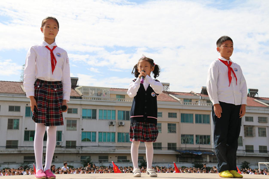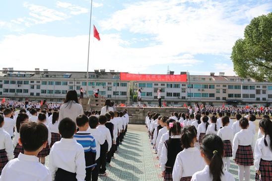 庄严的升旗仪式开始了,小朋友们昂首挺立,高唱国歌。一颗颗勤奋的种子已经埋在他们的心中,一颗颗小树苗即将在中兴小学温暖的怀抱中生根、发芽。