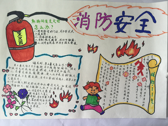 五年级的孩子们利用双休日精心制作了消防知识手抄报 在校园内展示 。那一张张手抄报图文并茂,构思新颖,书写工整。那一句句消防宣传标语、一幅幅生动形象的漫画, 为人们 敲响了安全警钟。