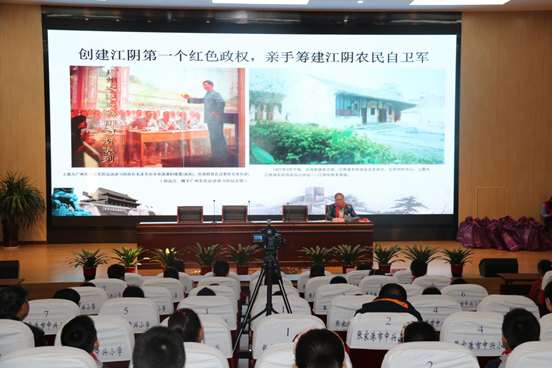 五年级 学生代表给老党员佩戴红领巾,拉近了学生同老党员之间的关系,表达少先队员传承革命精神的决心。孙品元老先生从孙逊群烈士从事革命工作的心路历程、创建江阴第一个红色政权、亲手筹建江阴农民自卫军三个部分讲解了孙逊群烈士的革命事迹。“红领巾”在“老党员”的引导下,回顾了中国共产党的光辉历程,也升华了对党和国家的热爱。