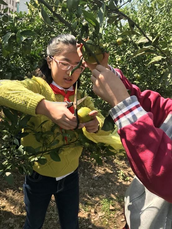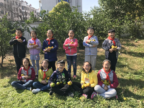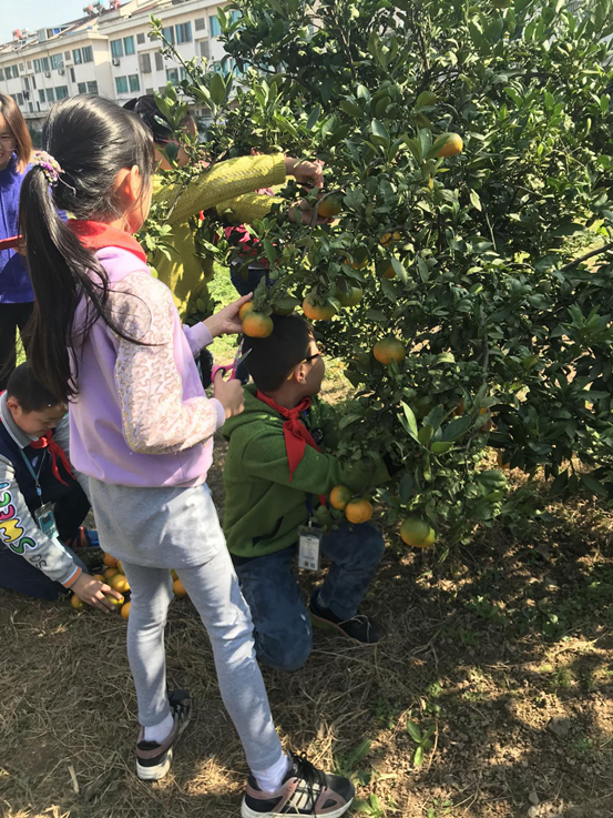 “云淡风轻近午天”,在 一个 阳光明媚的秋日下午,中兴小学二年级和五年级的孩子们来到学校一角采摘橘子。橘子树不高,有的只有一米多高,最高的也不过两米多,一只只圆圆的橘子挂在树梢上,大的大,小的小,有的绿中透黄,有的黄中带点绿,果型饱满圆润,非常诱人,沉甸甸的橘子挂满整个树枝,俨然是个丰收的季节。孩子们看着这一片丰收的景象,个个都迫不及待地冲了上去,弯下腰,钻进了硕果累累的橘树中。不一会儿,草地上就堆起来“橘子山”,孩子们欢快的小脸上露出了丰收的喜悦。采完后,大家把橘子拿给了全校师生共同分享,那酸酸甜甜的橘肉给大家留下了美好的回忆。