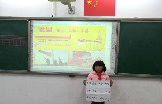 11月,中兴小学开展了社会主义核心价值观教育。通过这次活动,孩子们知道了什么是社会主义核心价值观。老师们将这二十四个字分国家、社会、个人三个层面,出示一幅幅图画,让孩子们具体地了解如何实践社会主义核心价值观,这也是本次教育活动的价值所在。