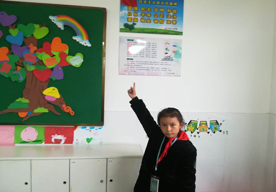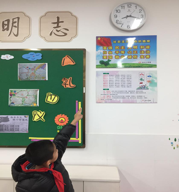 小朋友一下子就找到了在教室的后面有这二十四个字, 还 带着大家一起 朗读 , 背诵呢 。