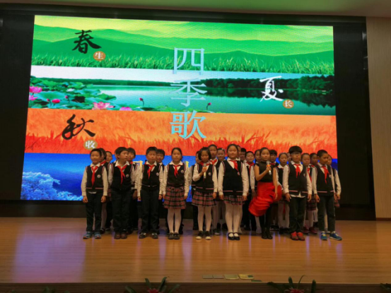 四4班大合唱《四季歌》,歌声嘹亮,动作整齐划一。