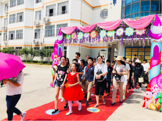 牵着爸爸妈妈的手,一同踏上鲜红的地毯,走过五彩的“成长之门”,喜悦与激动在孩子们的心中激荡。江畔路的两旁,三年级的同学微笑着用热情的掌声送上诚挚的祝福。