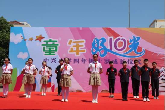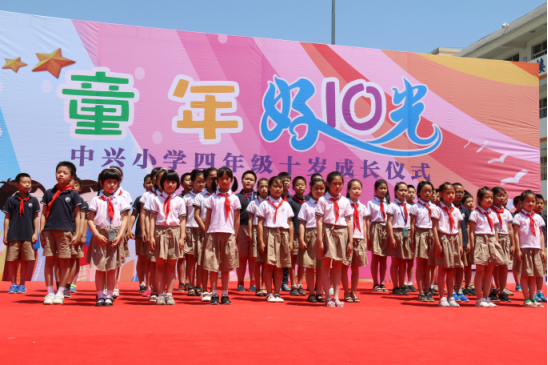 明媚的阳光洒落大地,温柔的清风拂过脸庞。在这灿烂的日子里,我们迎来了快乐的“六一”,也迎来了中兴小学四年级孩子们的十岁生日。上午9点半,四年级全体师生齐聚大操场,隆重举行四年级十岁成长仪式。