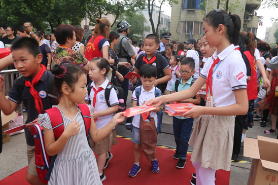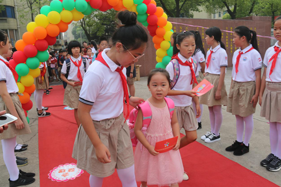 学校少先队大队干部主动担任起小向导工作,大手牵小手将新生领入新教室,以学校主人的身份熟练地介绍校园的每个角落。相信他们热情自信的微笑和文明的仪表已深深留在新生的心中,榜样的力量就在这一刻,悄然萌生。