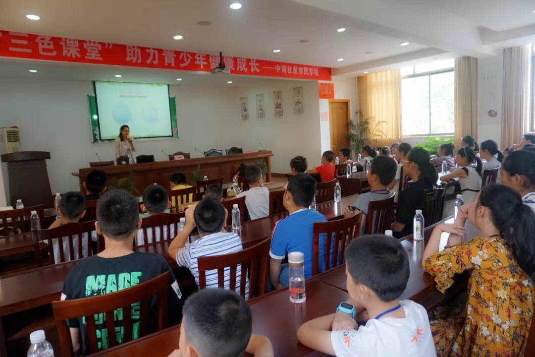 8月25日上午,中兴小学教师徐璐璐老师在中南社区二楼活动室进行蓝色课堂《一滴水的旅行》环保教育宣讲,数十名学生参加了本次活动。