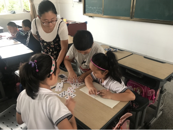 施芳媛老师正在耐心的指导孩子算24点。