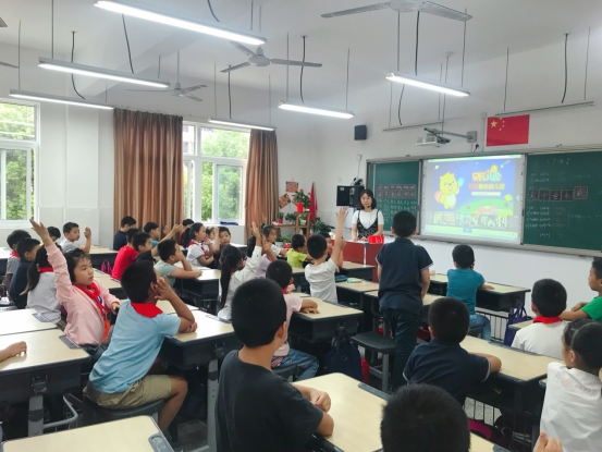 有趣的英语——《快乐ABC》深深地吸引着孩子们,瞧,大家的小手举得多高!