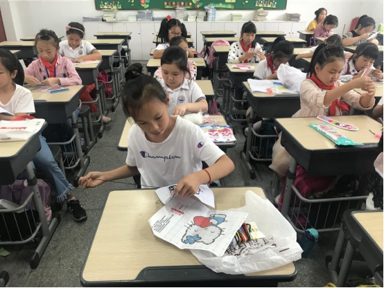 看!一针一线从孩子们的手中穿过,他们正在聚精会神的绣十字绣呢!