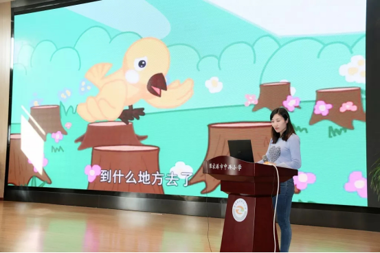 科学组的冯银娟老师从一幅图片“地球在呻吟”入手,让孩子们感知地球环境的现状,再让学生了解一棵树的价值,使学生认识到树对于保护环境,保护地球的重要,呼吁孩子们做一个有责任心的孩子。同时,冯老师发布了科学组的任务并招募学生加入科学组,学生们参与积极,在场的老师们都感受到了他们的热情。