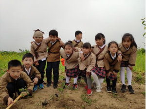 孩子们学着农夫的样子在田间辛勤地劳作,认识了青菜、麦苗、豆角等蔬菜,他们也在地里用力地松土,种上了自己喜爱的番茄苗,这些番茄苗在他们的精心种植下,多么的挺拔可爱,希望它们越长越好,结出娇嫩的果实。