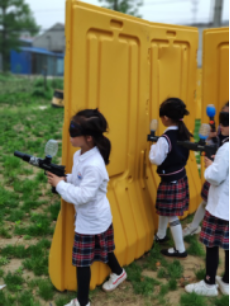 最后孩子们还进行了“丛林枪战”!感受了一次保家卫国的战争,在子弹的呼啸声中,我们互相协作、勇往直前,抵挡了对方一次次进攻,感觉自己就是一名真正的解放军战士。