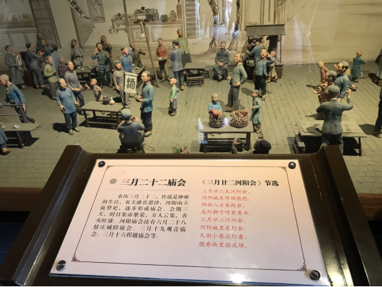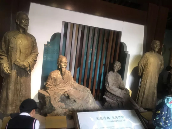 第三展厅是历史名人馆。千年的文化积淀,成就了河阳山的进士之乡,四位状元塑像或坐或站立。数位进士官员每人都有一首歌,一代一代传下去,让后人永世不忘他们的建树,小朋友们或赞叹或崇拜,河阳真是人杰地灵啊!