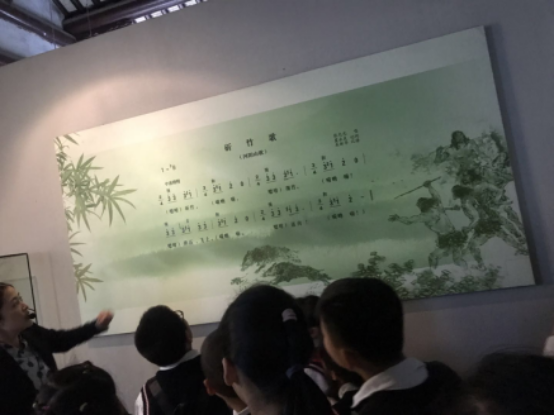 第一展厅河阳山歌主题馆,展现“国之瑰宝 世界奇葩”——河阳山歌与历史演变。与讲解员一起唱“斫竹歌”,这首原生态歌谣,古朴率性,清澈透亮,如今小朋友唱起来别有一番风味,都兴趣浓浓。头顶的布幔,都是一首首民歌,讲述着一个个传奇动人的故事。