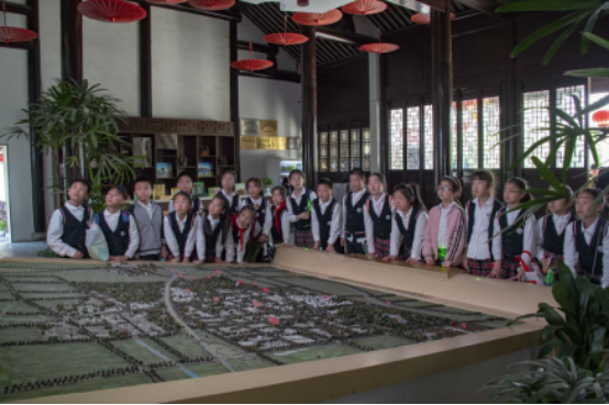 入口门厅,讲解员讲解古河阳地区的主要地貌、历史文化古迹、风景名胜、民俗风情等,小朋友们围绕着沙盘,静静地听着、思考着。