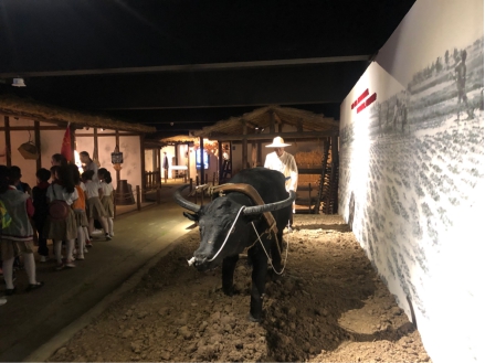 一路欢歌笑语,半个多小时后到达了目的地,工作人员带领孩子们开始参观,别看农耕文化馆的入口不起眼,里面真是别有洞天。
