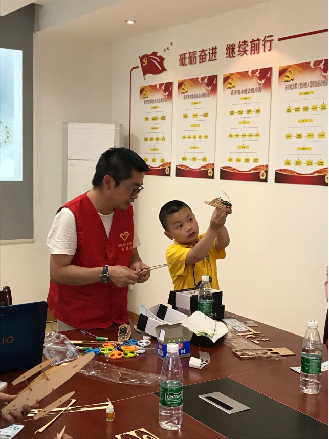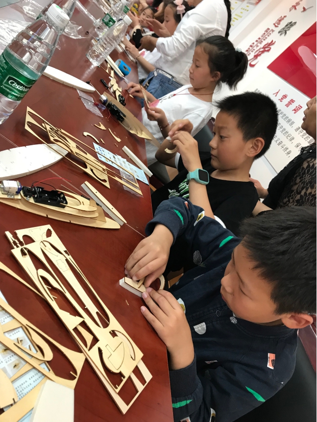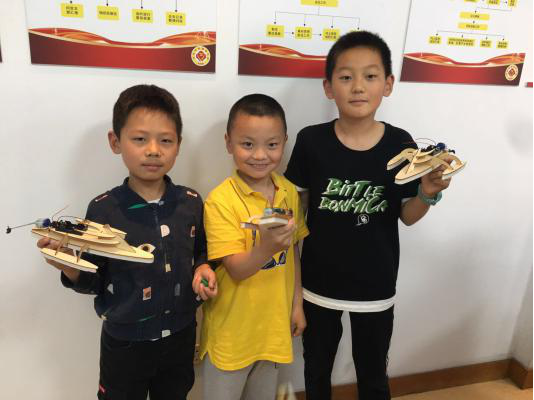 2个多小时的活动中,孩子们通过不断尝试和探索,都自己动手组装完成了游艇模型。