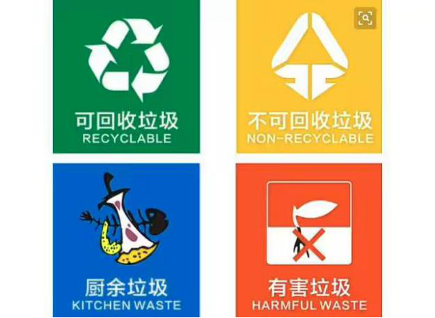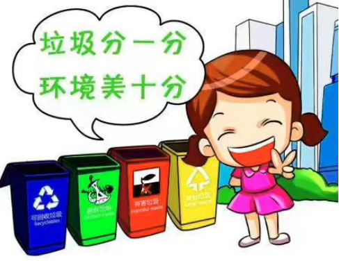 课上,许老师告诉大家,垃圾根据其不同的组成,分为不同的种类。有可回收垃圾、不可回收垃圾、厨余垃圾、有害垃圾。