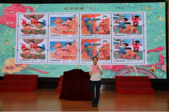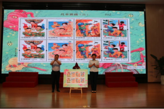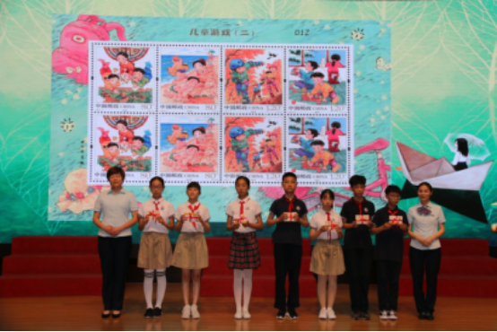游戏伴随着孩子们的成长,中国邮政定于2019年6月1日在全国发行儿童游戏2 特种邮票,让每一个孩子都能拥有美好的童年回忆。在热烈的掌声中,中国邮政金港分局杜苑匀经理宣读邮票发行通告。严卫星校长,中国邮政中兴支局陶静局长上台揭幕。