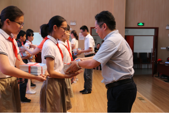 校领导为同学们颁发纪念册,给同学们的小学生涯留下美好的记忆。六年级的毕业生也展示了给母校敬献的足球雕塑,感恩母校的辛勤培育。