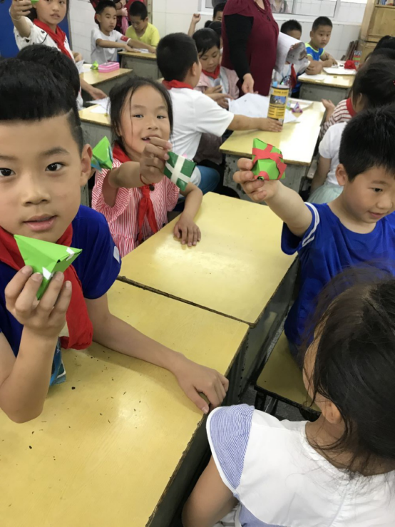 瞧,小朋友们亲手折的粽子真是有模有样!