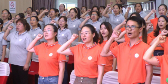 “学高为师,身正为范”,这是对教师师德的最好写照。在严校长的带领下,全体老师高举右拳,郑重宣誓,励志牢记教师职责,不辱神圣使命,锐意进取。