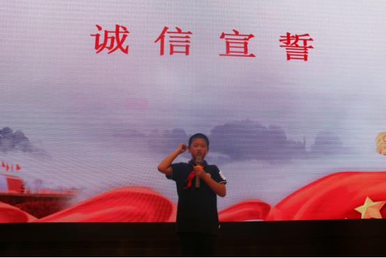 “我要做一个诚实守信的人……”大队部卢嘉轩带领全体队员诚信宣誓。从今天起,诚信的种子将在每个人心中生根发芽,诚信之风将吹遍校园。