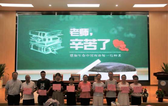 王荷琴副校长宣读学科及班主任师徒结对名单。学校为师傅们颁发了结对证书,徒弟们在教师节来临之际为师傅们献上了鲜花和礼物,师徒合影留念,定格下一张张笑脸。
