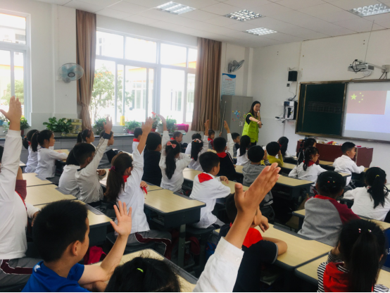 在红色地理课活动中,社工带领学生一起从方向,省会简称由简到难,深化了解根据地的名字意义;与学生一起在中国地图上用红星找出红色根据地,分享每一个根据地的历史和功绩,缅怀革命先烈为解放新中国洒下的英雄热血,激发儿童努力学习践行中国梦的使命感。接着,通过接力诵读的模式,与学生互动,了解陈毅将军的故事,再次激发学生们的爱国情怀与红色激情,向历史人物致敬,学习!最后,小朋友们还认真地填写了红色留言卡。一张地图、一个革命根据地、一堂简短的红色地理课,通过生动的介绍和有趣的互动,小朋友们走进了历史,走进了红色发源地。