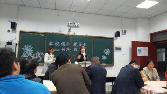 严卫星校长首先做了主题为《家校携手提质量 同心协力促成长》的讲座,他指出“没有成绩是无知的”,“只有成绩是无聊的”,“为了成绩不择手段是无耻的”,并从保证安全、方便沟通等方面提出了几点建议。
