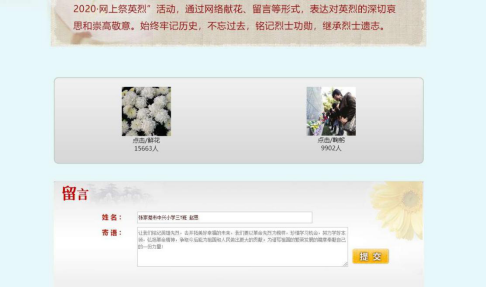 少先队员们通过向烈士网上献花、鞠躬、发表祭奠感言等方式来缅怀烈士丰功伟绩,表达对英烈的感恩和敬仰。