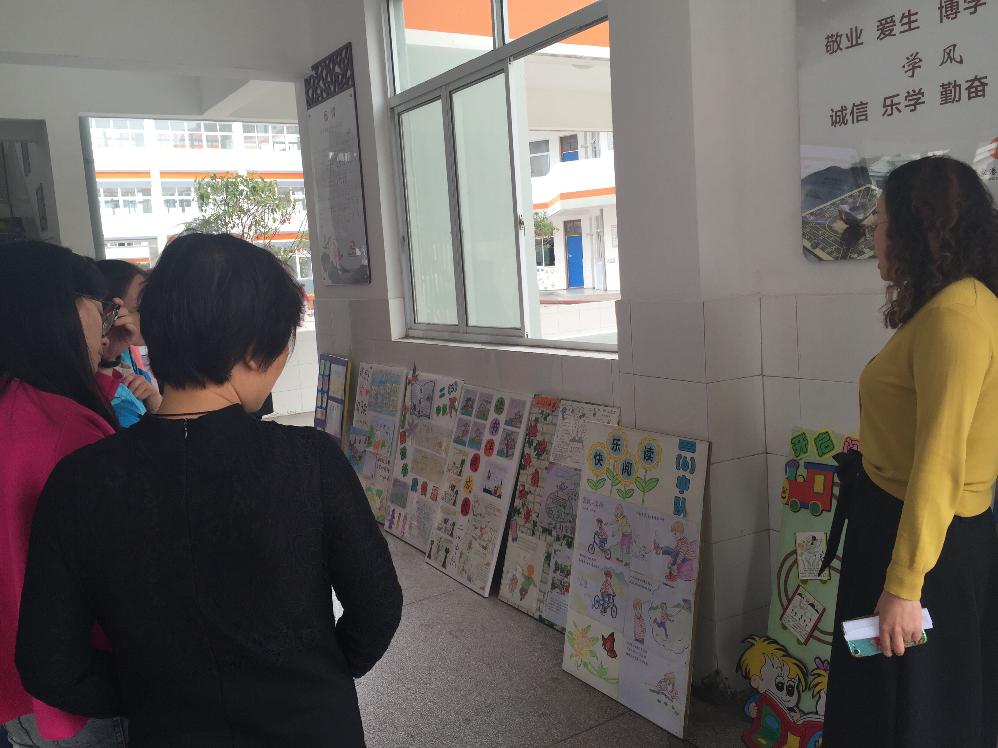 经过各班同学和老师们的齐心努力,一块块布置精美、主题鲜明的展板呈现在大家眼前,让大家一饱眼福。一、二、三年级语文老师在王荷琴副校长的带领下,集中展评现场,共同学习,不时传来啧啧赞叹。中午每位评委以学生参与率高,内容丰富,设计精美为标准,分别一、二、三年级的版面进了评比,其中,一(6)班、二(4)班、三(3)班脱颖而出获得一致好评,喜获一等奖。