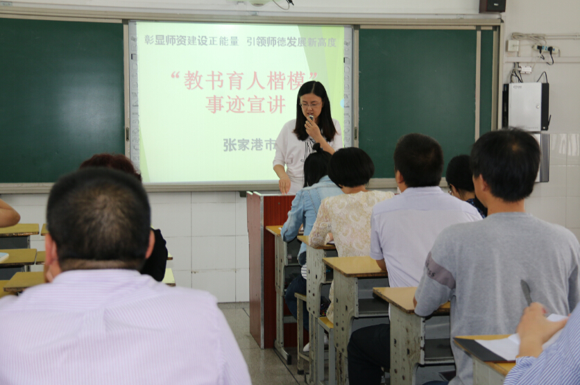 本次活动介绍了学校蒋琴和丁海燕两位老师的先进事迹,活动要求每位教职工都要学习她们不忘初心、献身教育的坚定信念;学习她们勤于钻研、追求卓越的进取精神。
