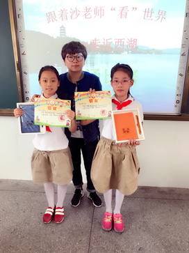 期待已久的“跟着沙老师‘看’世界——走近西湖”朗诵比赛在这一节课就要举行啦。