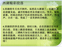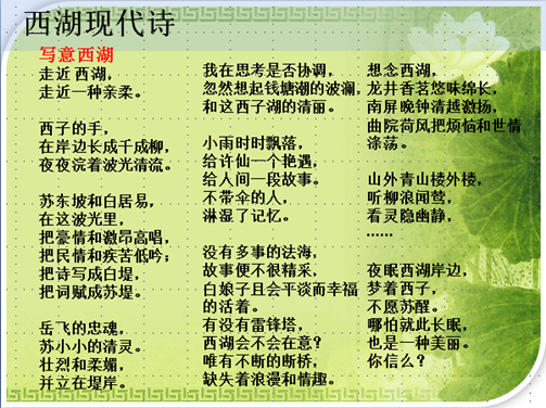 这是一首描写西湖的现代诗。让孩子们自己先试试,然后上台来展示。