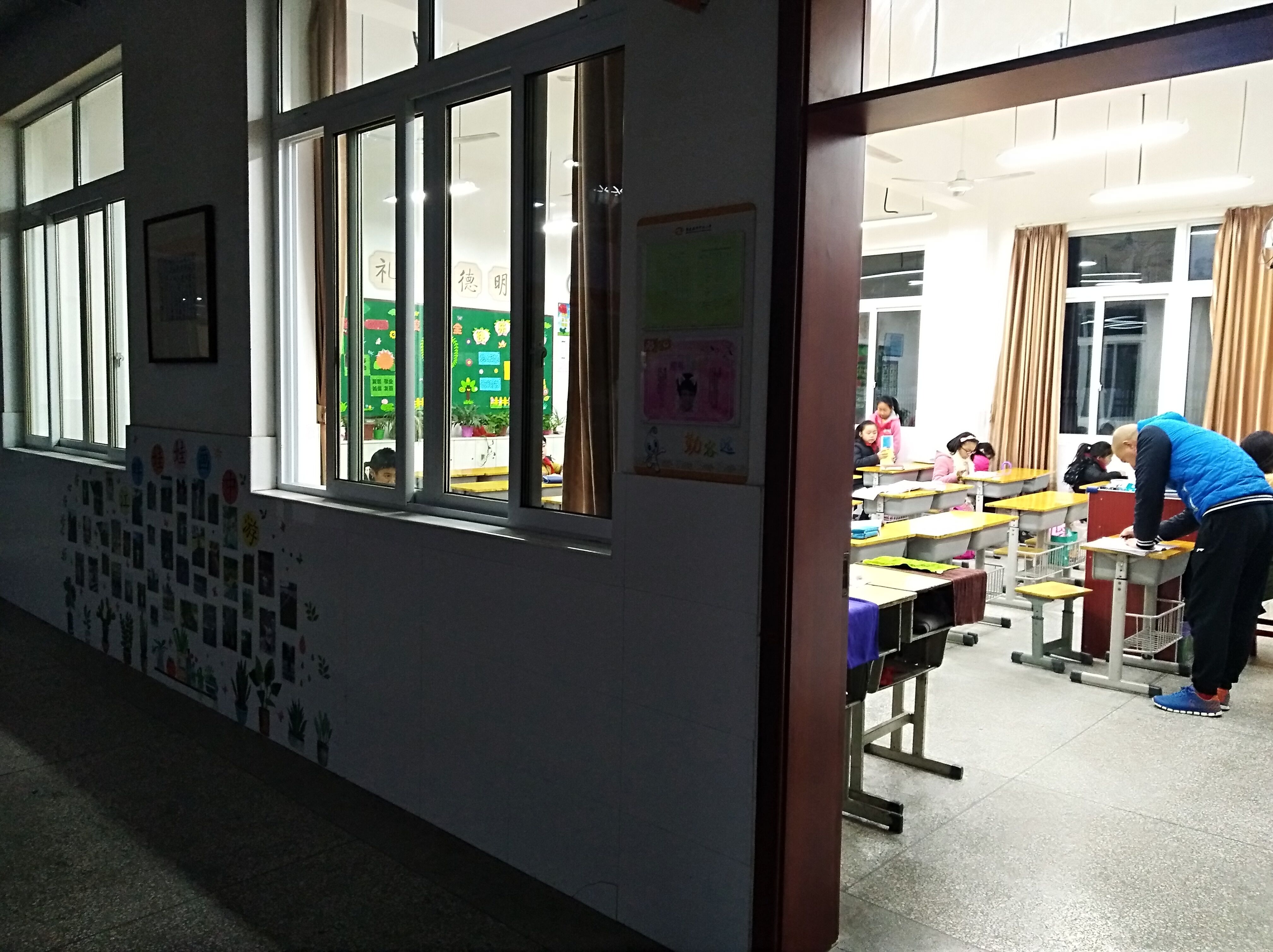 阳光斜射,鸟儿归巢。热闹了一天的校园安静下来。中兴小学校园里,忙碌了一天的老师们一起走进“四点半学校”的教室。