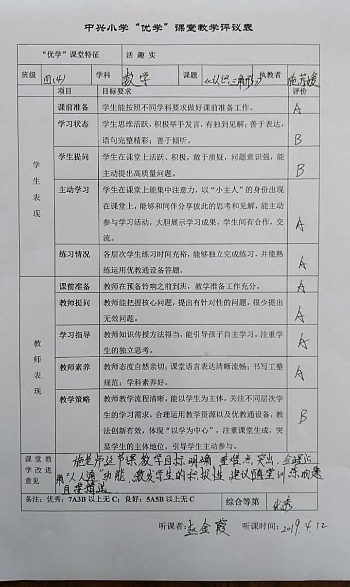 为了充分展示师徒结对成果,4月8至12日,中兴小学举行了本学年第二轮“师徒结对徒弟展示课”活动。本次活动的研讨主题为:聚焦“优教通”平台,打造“优学”课堂,共有11节课进行了展示。