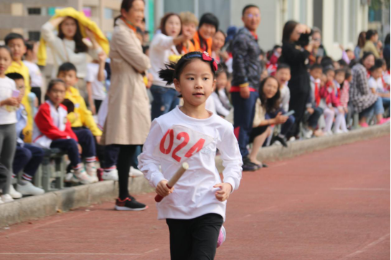 比赛开始,孩子们如同离弦的箭一样迅速沿着跑道向前飞奔,每一个接力点处,孩子们也都迅速做好起跑准备。