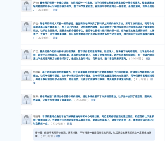听课结束后,与会老师感触颇多,纷纷进行了“线上”评课,发表了自己的见解与感想。