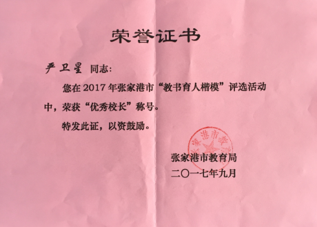 热烈祝贺严卫星校长荣获“优秀校长”称号