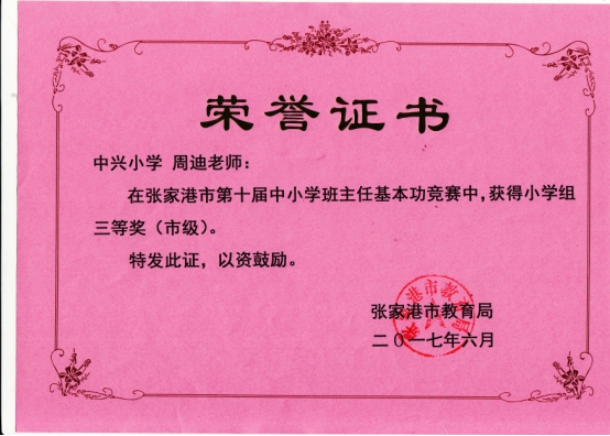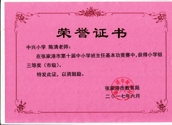 热烈祝贺陈清、周迪老师在张家港市第十届中小学班主任基本功竞赛中荣获三等奖