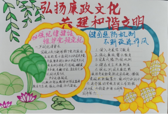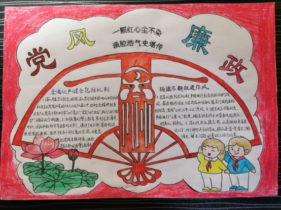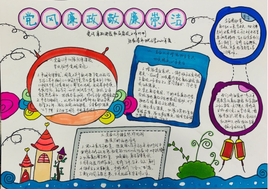 为认真落实全面从严治党的总体要求,使党员干部增强“四个意识”,严肃党内政治生活,推进全面从严治党不断向纵深发展,支部组织开展以“党风廉政建设”为主题制作手抄报的活动,努力营造风清气正的育人环境。