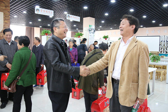 金秋送爽,丹桂飘香。10月26日下午,校行政邀请退休老教师回校欢度“重阳节”。首先负责退协工作的金校长对退休教职工们回到“娘家”欢度重阳节表示了热烈欢迎,接着严卫星校长 向老 教师 们介绍了学校 发展 的情况, 围绕2017--2018学年学校两个工作举措作了详尽的阐述:一是全面把握学校教育发展现状,全方位推进“三聚”;二是抓实学期工作重点,推进教育优质发展。座谈结束后,严卫星校长领着他们 ,参观了 未来教室 、实验室、 报告厅 等设施设备先进的功能教室 , 老同志们感慨万千 ---- 学校的发展特色 鲜明 , 学校正 向着教育现代化的目标大步前进。 活动结束后,学校还给每一位退休老师送上了一份礼物,礼轻情意重,祝福退休教师们健康长寿!