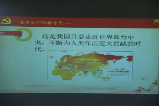 会议的第二个议程,陆建新副校长上了题为《说说我们的新时代》的党课,他从五个方面详细阐述了“中国特色社会主义进入了新时代,这是我国发展新的历史方位”,中国共产党人在新时代继续谱写中国特色社会主义这篇大文章,形成了新时代中国特色社会主义思想,让与会人员更加理解了和平、稳定发展环境的来之不易,坚定了永远跟着中国共产党走的理想信念。